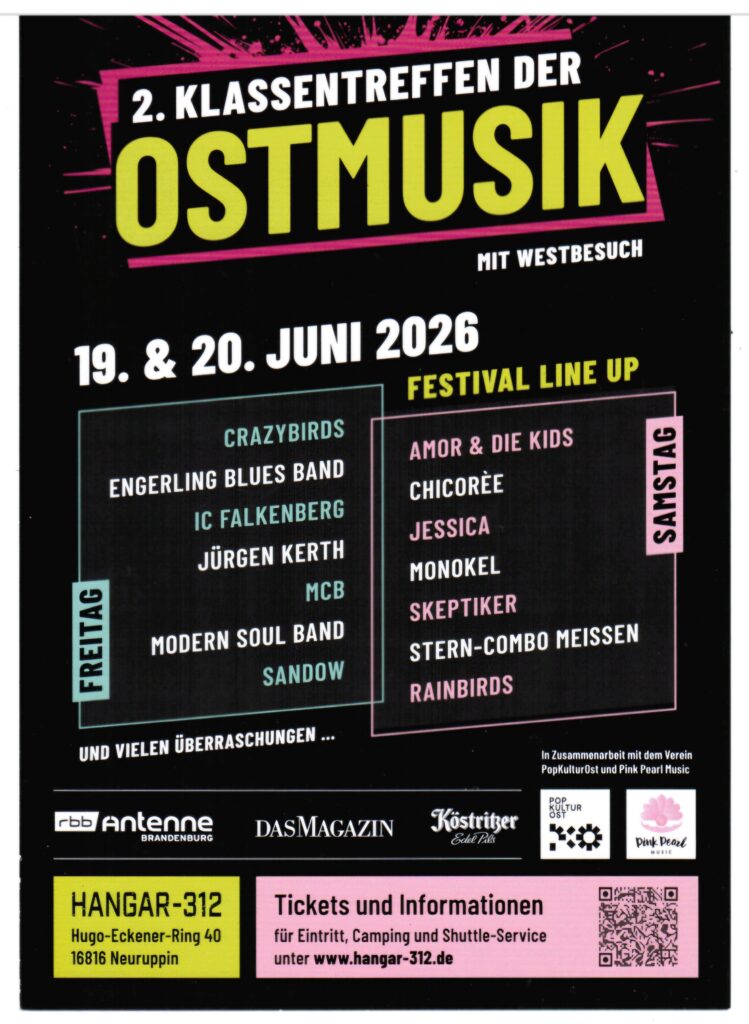 19.06.2026 findet das „Klassentreffen der Ostmusik“ in Neuruppin statt und wir sind mit dabei